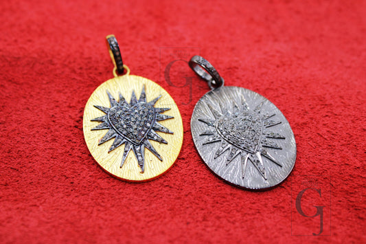 Very beautiful love sunburst designer charm Rosecut pave diamond pendant 925 sterling silver handmade finish diamond charms necklace pendant