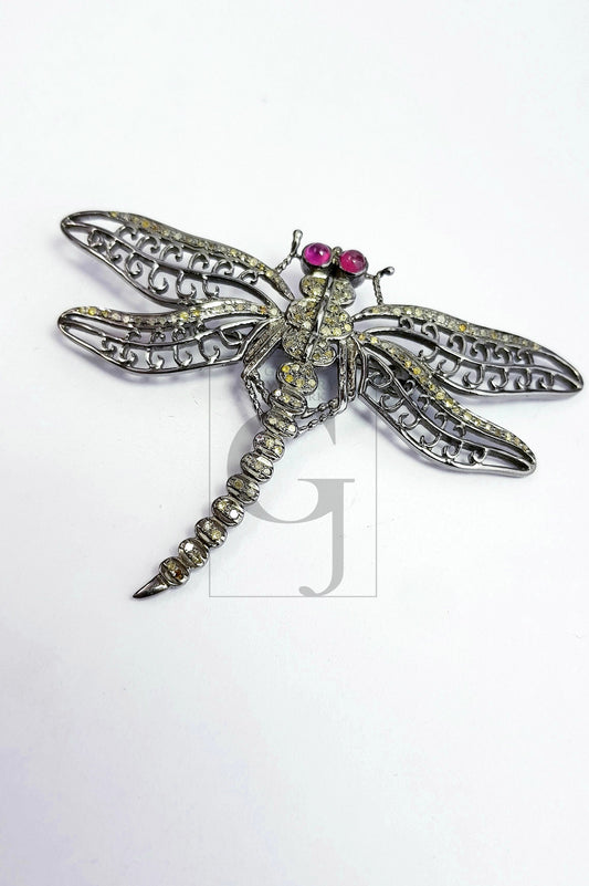 Very Beautiful Dragonfly design pendant pin Rosecut pave diamond pendant 925 sterling silver handmade finish diamond pendant jewelry