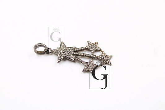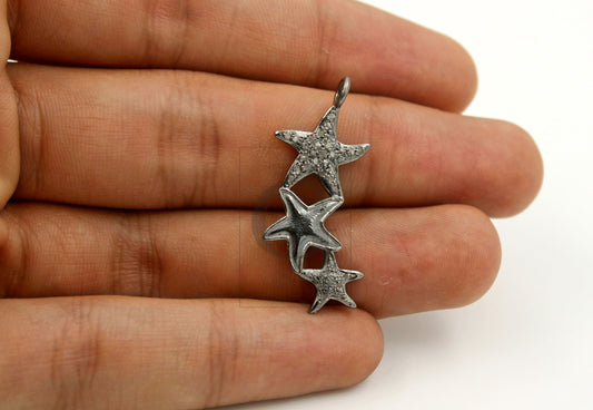 1pc Oxidized Finish Star Designer Pendant Rosecut Pave Diamond Pendant 925 Sterling Silver Handmade Finish Diamond Jewelry Starburst Pendant