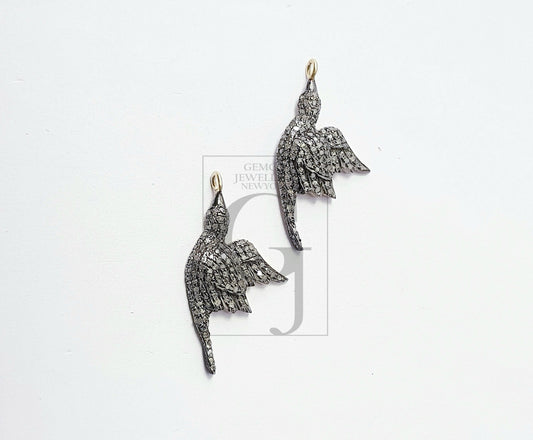 Latest fairy wings shaped Rosecut pave diamond pendant 925 sterling silver handmade finish diamond pendant jewelry