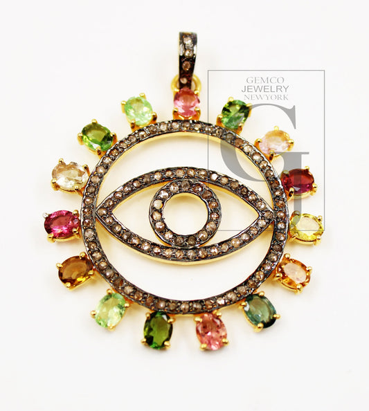 Very beautiful evil eye pendant designer Rosecut pave diamond pendant 925 sterling silver handmade finish diamond charms necklace pendant