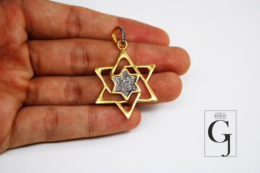 Roman Star pendant 14k gold designer Rosecut pave diamond pendant 925 sterling silver handmade finish diamond charms necklace pendant