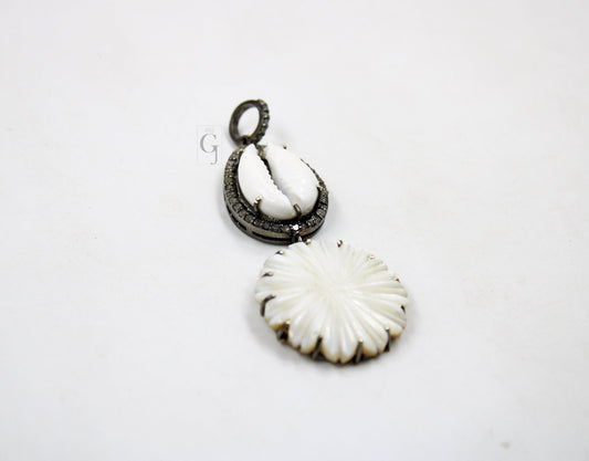 Beautiful Designer Cowrie Mother Of Pearl Pendant Diamond Rosecut Pave Diamond Pendant 925 Sterling Silver Handmade Diamond Necklace Pendant