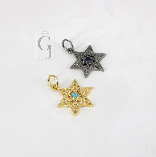 Star pendant sapphire turquoise designer Rosecut pave diamond pendant 925 sterling silver handmade finish diamond charms necklace pendant