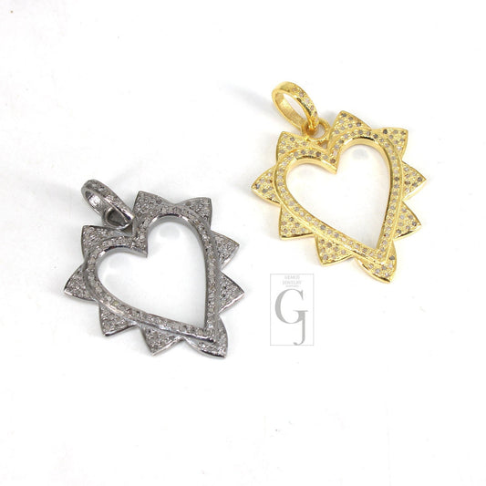 Valentine gift designer diamond heart pendant Rose cut pave diamond pendant 925 sterling silver handmade diamond charms necklace pendant