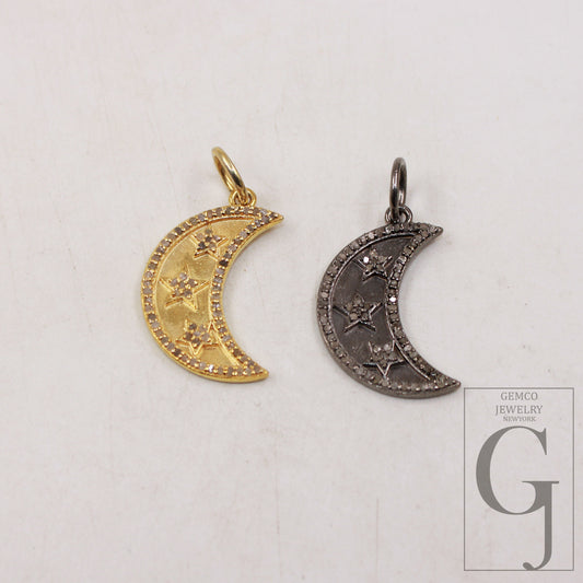 Crescent moon star pendant designer Rosecut pave diamond pendant 925 sterling silver handmade finish diamond charm necklace pendant jewelry