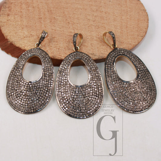 1pc Vermeil Gold Oval Shaped High Quality Rosecut Pave Diamond Pendant 925 Sterling Silver Handmade Finish Diamond Pendant Jewelry Charms