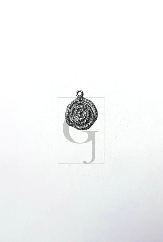 Pave Diamond Rosecut Pendant 925 Sterling Silver Pendant Handmade Diamond Pendant Beautiful Sunburst Design Paved Diamond Charm Pendant