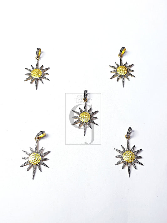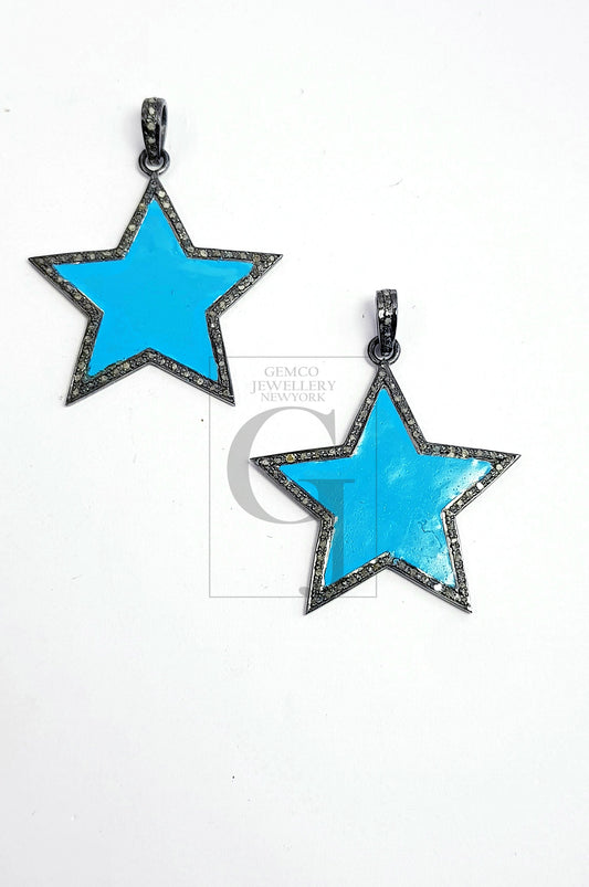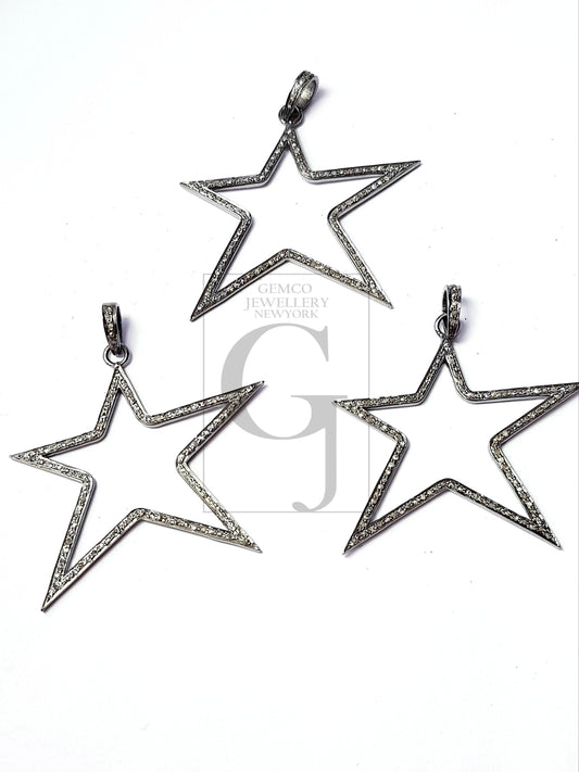 Beautiful Star Pendant Rosecut Pave Diamond Pendant 925 Sterling Silver Handmade Finish Star Cutting Design Diamond Pendant Jewelry