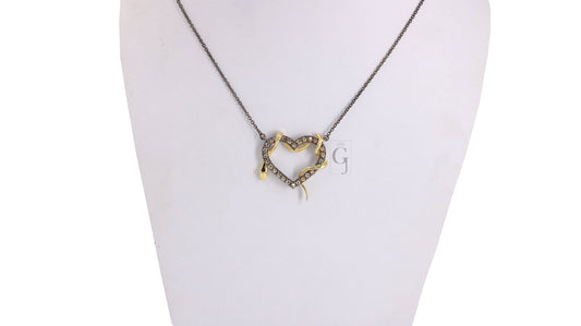 Beautiful Heart And Snake Pendant Necklace Designer Rosecut Pave Diamond Pendant Sterling 925 Silver Handmade Finish Diamond Charms Pendant