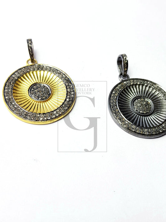 Beautiful Circle Rosecut Pave Diamond Pendant 925 Sterling Silver Handmade Finish Diamond Jewelry