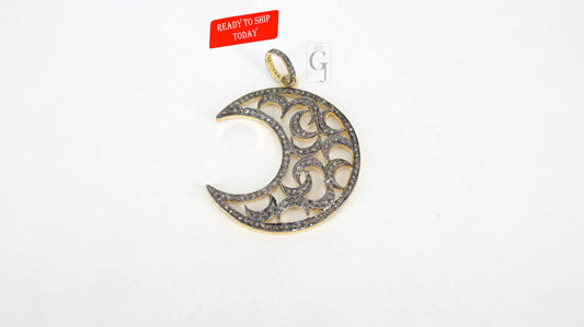 very beautiful moon designer pendant Pave diamond rosecut pendant 925 sterling silver pendant handmade finish diamond neclace pendant