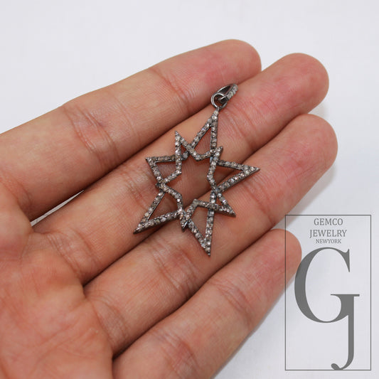 1pc Oxidized Star Pendant Rosecut Pave Diamond Pendant 925 Sterling Silver Handmade Finish Diamond Jewelry Necklace Pendant Jewelry