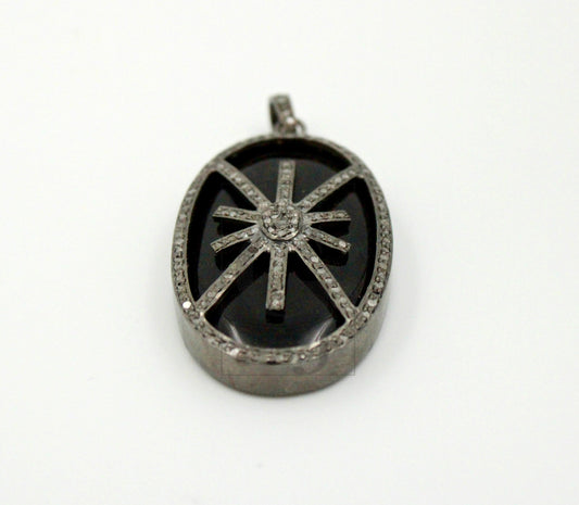 Beautiful Starburst Black Stone Designer Rosecut Pave Diamond Pendant 925 Sterling Silver Handmade Finish Diamond Jewelry Necklace Pendant