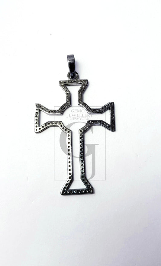 Latest cross design Rosecut pave diamond pendant 925 sterling silver handmade finish beautiful diamond pendant jewelry
