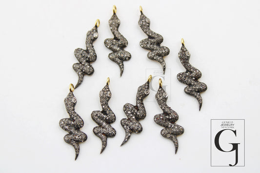 Beautiful Antique Look Snake Charm Designer Rosecut Pave Diamond Pendant 925 Sterling Silver Handmade Finish Diamond Charms Necklace Pendant