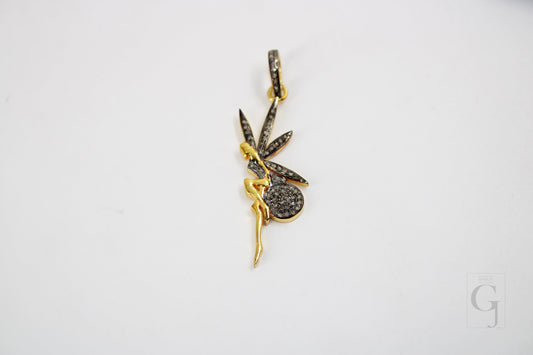 Beautiful 14k Gold Designer Fairy Pendant Rosecut Pave Diamond Pendant 925 Sterling Silver Handmade Finish Diamond Charms Necklace Pendant