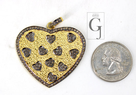 Very beautiful heart love pendant designer Rosecut pave diamond pendant 925 sterling silver handmade finish diamond charms necklace pendant