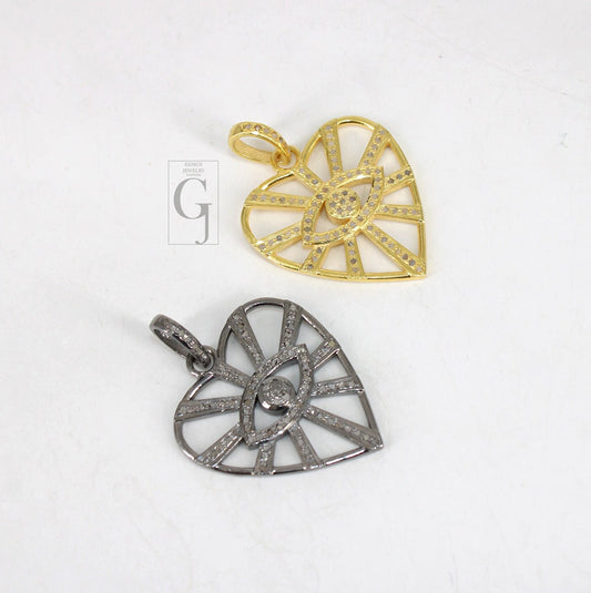 Evil eye pendant heart love designer Rosecut pave diamond pendant 925 sterling silver handmade finish diamond charms necklace pendant
