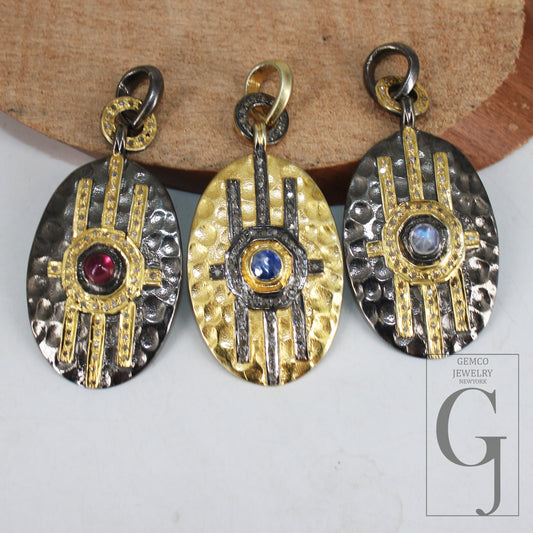 Latest Moon Designer Rosecut Pave Diamond Pendant 925 Sterling Silver Handmade Finish Diamond Charm Pendant