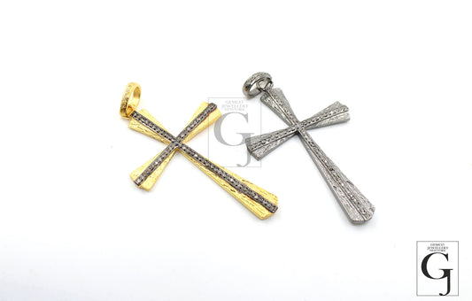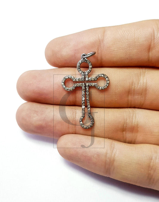 Beautiful Cross Design Rosecut Pave Diamond Pendant 925 Sterling Silver Handmade Finish Latest Style Diamond Pendent Jewelry