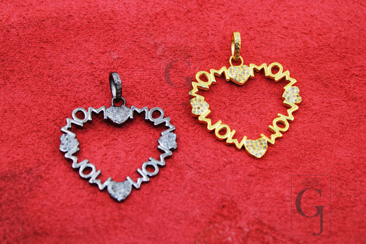 Very Beautiful Love Mom Heart Designer Rosecut Pave Diamond Pendant 925 Sterling Silver Handmade Finish Diamond Jewelry Necklace Pendant