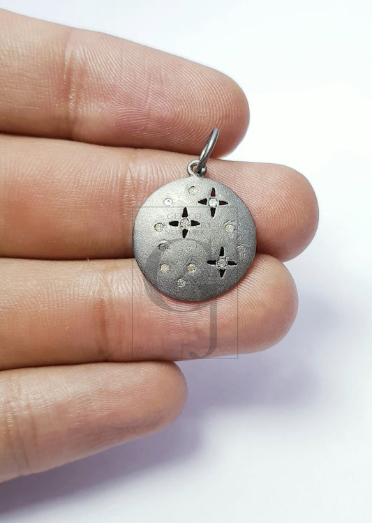 Circle shaped designer Rosecut pave diamond pendant 925 sterling silver handmade finish diamond pendant jewelry