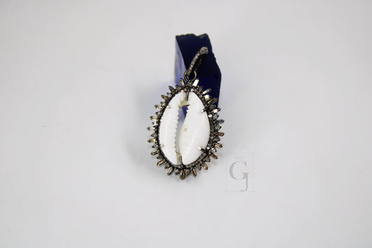 Very beautiful designer cowrie designer Rosecut pave diamond pendant 925 sterling silver handmade finish diamond charms necklace pendant