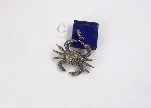 Antique Look Crab Designer Pendant Rosecut Pave Diamond Pendant Sterling 925 Silver Handmade Finish Diamond Charms Necklace Pendant