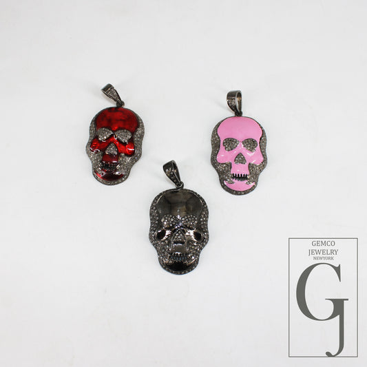 skull enameling designer pendant Rosecut pave diamond pendant 925 sterling silver handmade finish diamond charms necklace pendant