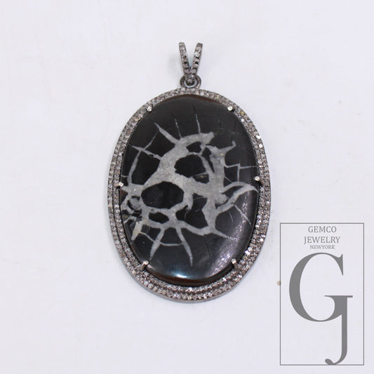 Spider web designer black septarian pendant Rosecut pave diamond pendant 925 sterling silver handmade finish diamond charms necklace pendant
