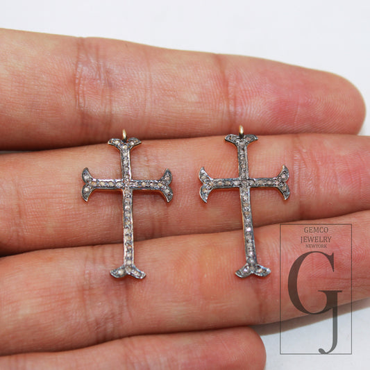 1pc Vermeil Gold Beautiful Cross Design Rosecut Pave Diamond Pendant 925 Sterling Silver Handmade Finish Charm Diamond Pendant Jewelry