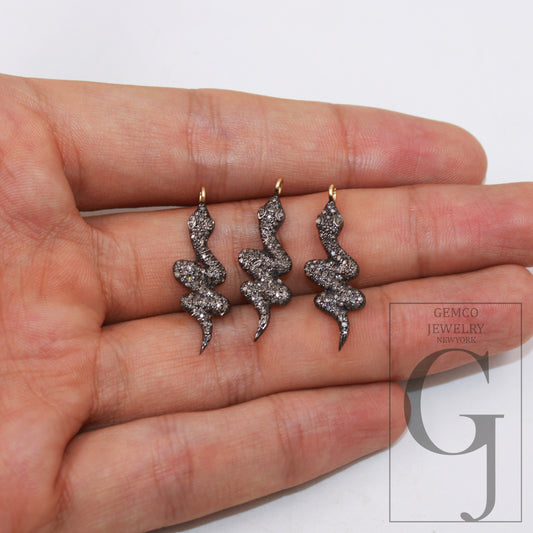 Antique Vermeil Gold Snake Charm Designer Rosecut Pave Diamond Pendant 925 Sterling Silver Handmade Finish Diamond Charm Necklace Jewelry