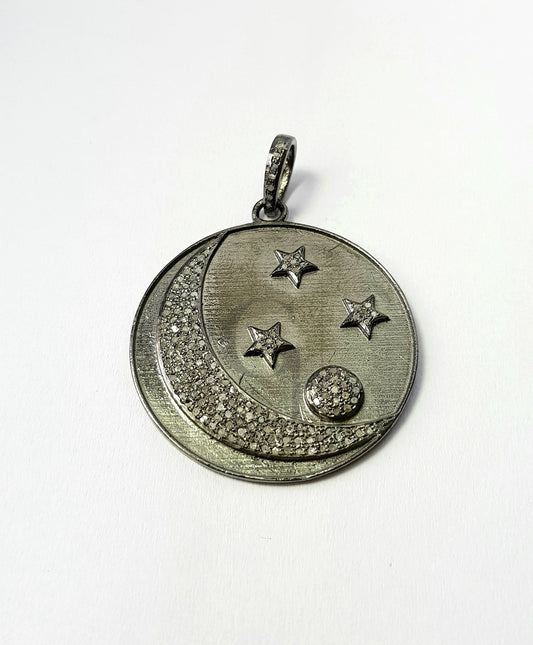 Very beautiful crescent moon star designer Rosecut pave diamond pendant 925 sterling silver handmade finish diamond jewelry pendant