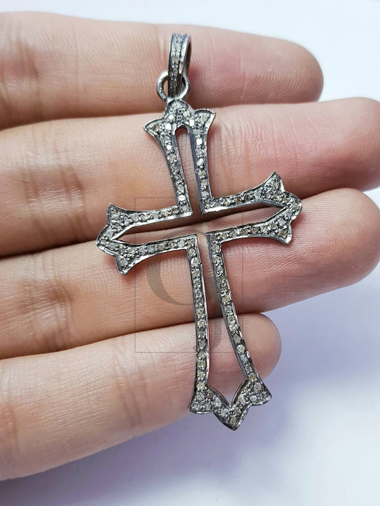 Latest cross design Rosecut pave diamond pendant 925 sterling silver handmade finish beautiful diamond pendant jewelry