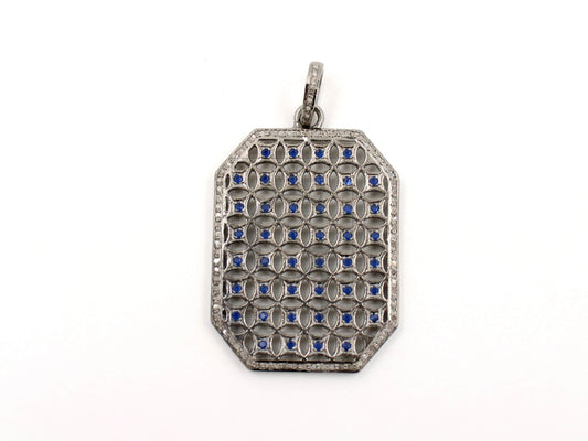 Flower pendant Sapphire turquoise designer Rosecut pave diamond pendant 925 sterling silver handmade finish diamond charm necklace pendant