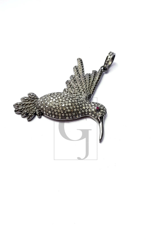 Beautiful Bird Design Rosecut Pave Diamond Pendant 925 Sterling Silver Handmade Finish Latest Design Nature Inspired Diamond Pendant Jewelry