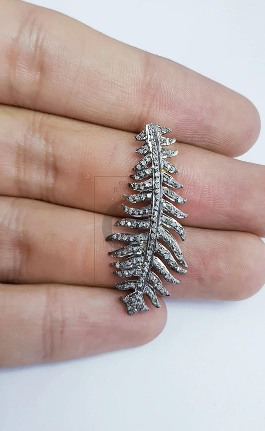 Beautiful Feather Design Rosecut Pave Diamond Pendant 925 Sterling Silver Handmade Finish Latest Designer Diamond Pendant Jewelry