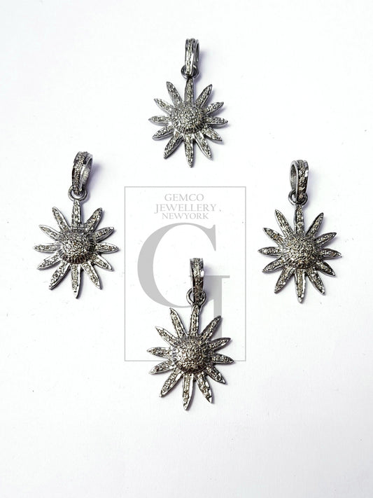 Very beautiful sun burst design Rosecut pave diamond pendant 925 sterling silver handmade finish designer diamond pendant jewelry