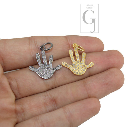Very Cool designer high five pendant Rosecut pave diamond pendant 925 sterling silver handmade finish diamond charms necklace pendant