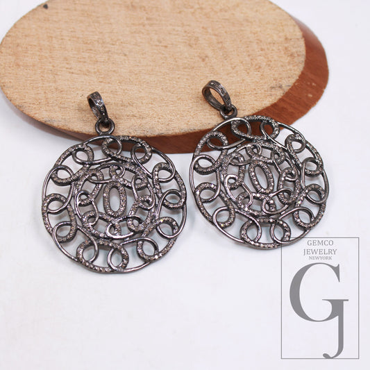 Antique Look Geek Pendant Designer Rosecut Pave Diamond Pendant 925 Sterling Silver Handmade Finish Circle Shaped Diamond Pendant Jewelry