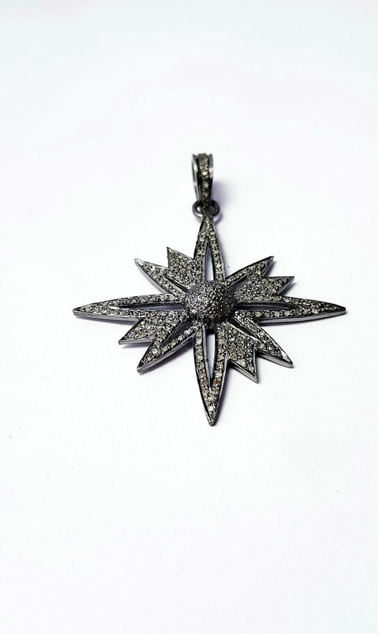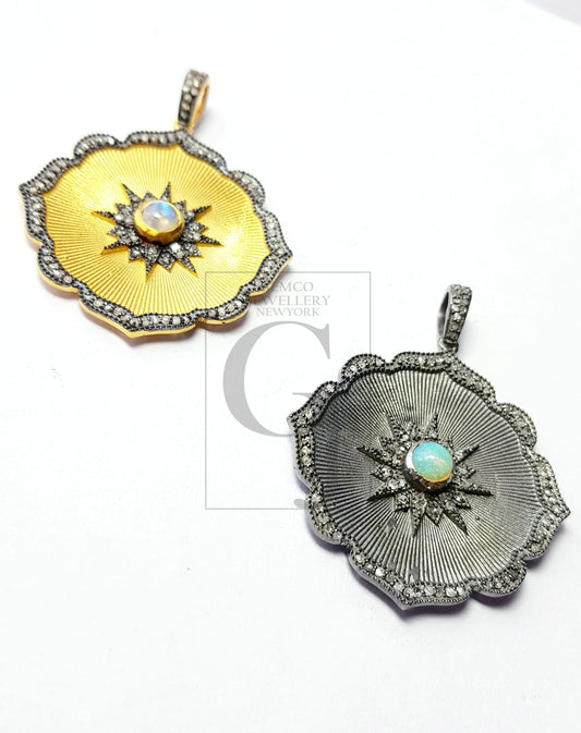 Beautiful Starburst Design Rosecut Pave Diamond Pendant 925 Sterling Silver Handmade Finish Diamond Pendant Jewelry