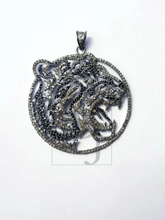 Panther pendent animal figure diamond pendent Rosecut pave diamond pendant 925 sterling silver handmade finish diamond tiger design jewelry