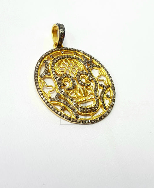 Skull designer Rosecut pave diamond pendant 925 sterling silver handmade finish diamond jewelry pendant