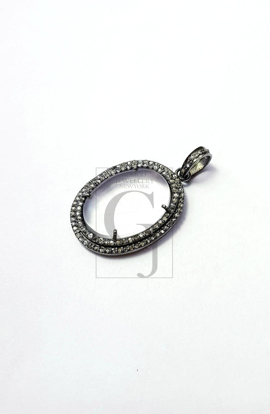 Beautiful Designer Rosecut Pave Diamond Pendant 925 Sterling Silver Handmade Finish Natural Oval Crystal Stone Center Stone Diamond Jewelry
