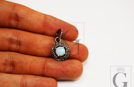 Very beautiful natural Opal designer Rosecut pave diamond pendant 925 sterling silver handmade finish diamond charms necklace pendant