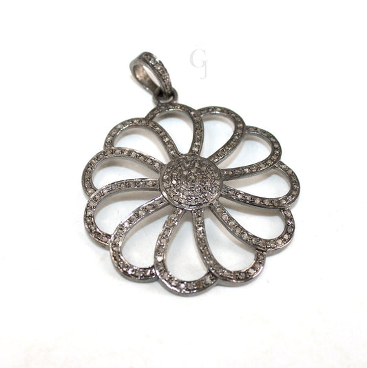 Beautiful Designer Flower Pendant Rosecut Pave Diamond Pendant 925 Sterling Silver Handmade Finish Flower Style Diamond Pendant Jewelry