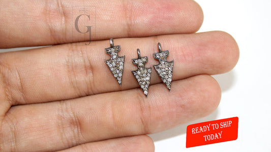 Antique Designer Arrowheads Rose Cut Pave Diamond Pendant 925 Sterling Silver Handmade Finish Diamond Charms Necklace Pendant Jewelry