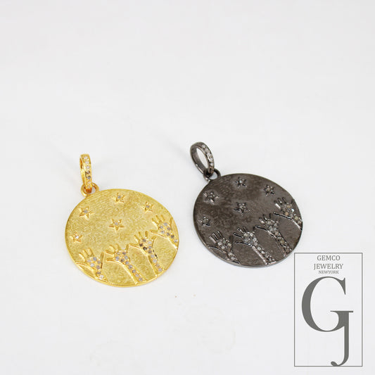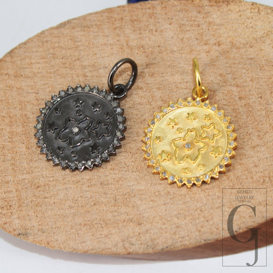 Beautiful Sky With Star Designer Rosecut Pave Diamond Pendant 925 Sterling Silver Handmade Finish Diamond Charms Necklace Pendant