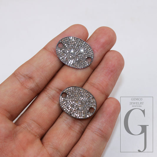 1pc Oxidized Bracelet Connector Designer Rosecut Pave Diamond Connector 925 Sterling Silver Handmade Finish Diamond Charms Connector Jewelry